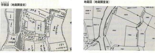 地籍調査はこのような状況を改善し,時代の要請にこたえるために,正確な土地に関する記録(地籍簿)や近代的測量による現地復元能力のある地図(地籍図)を整備して,地籍の明確化を図り,国土の開発・保全・利用の高度化に資することを目的として行われています。